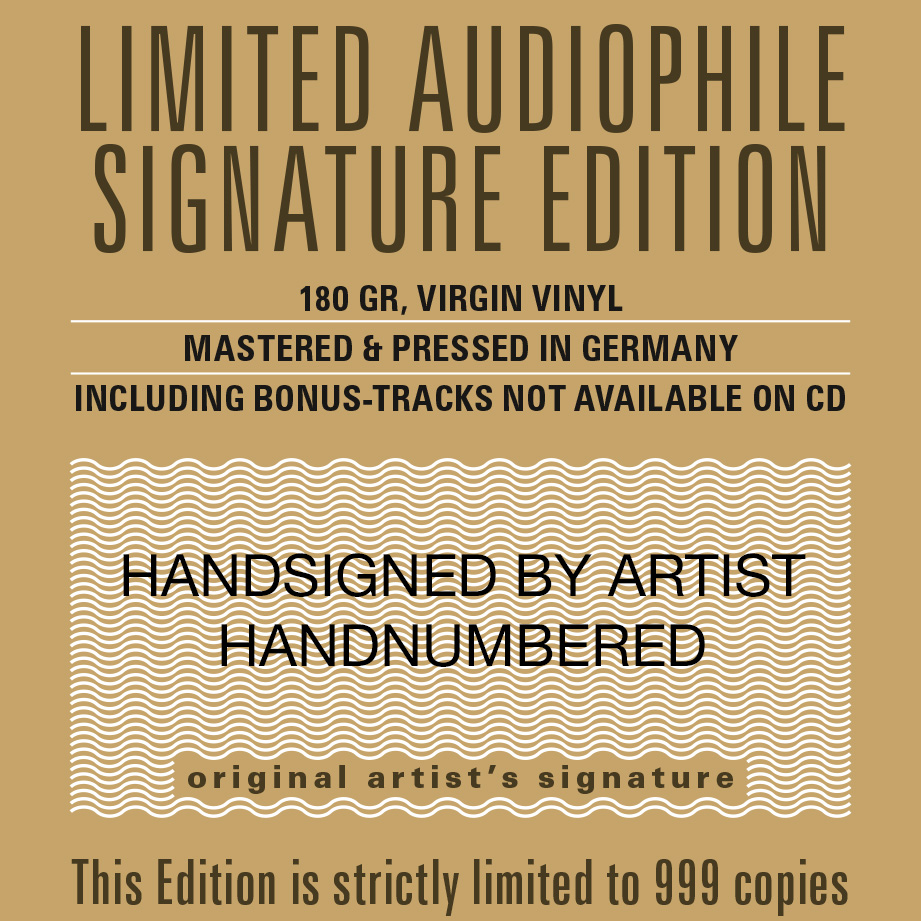 Read MoreLIMITED AUDIOPHILE SIGNATURE EDITION All albums handsigned by artist, handnumbered and limited SAVE 25%! LIMITED AUDIOPHILE SIGNATURE EDITION Alle Album handsigniert vom Künstler, handnummeriert und l [...]